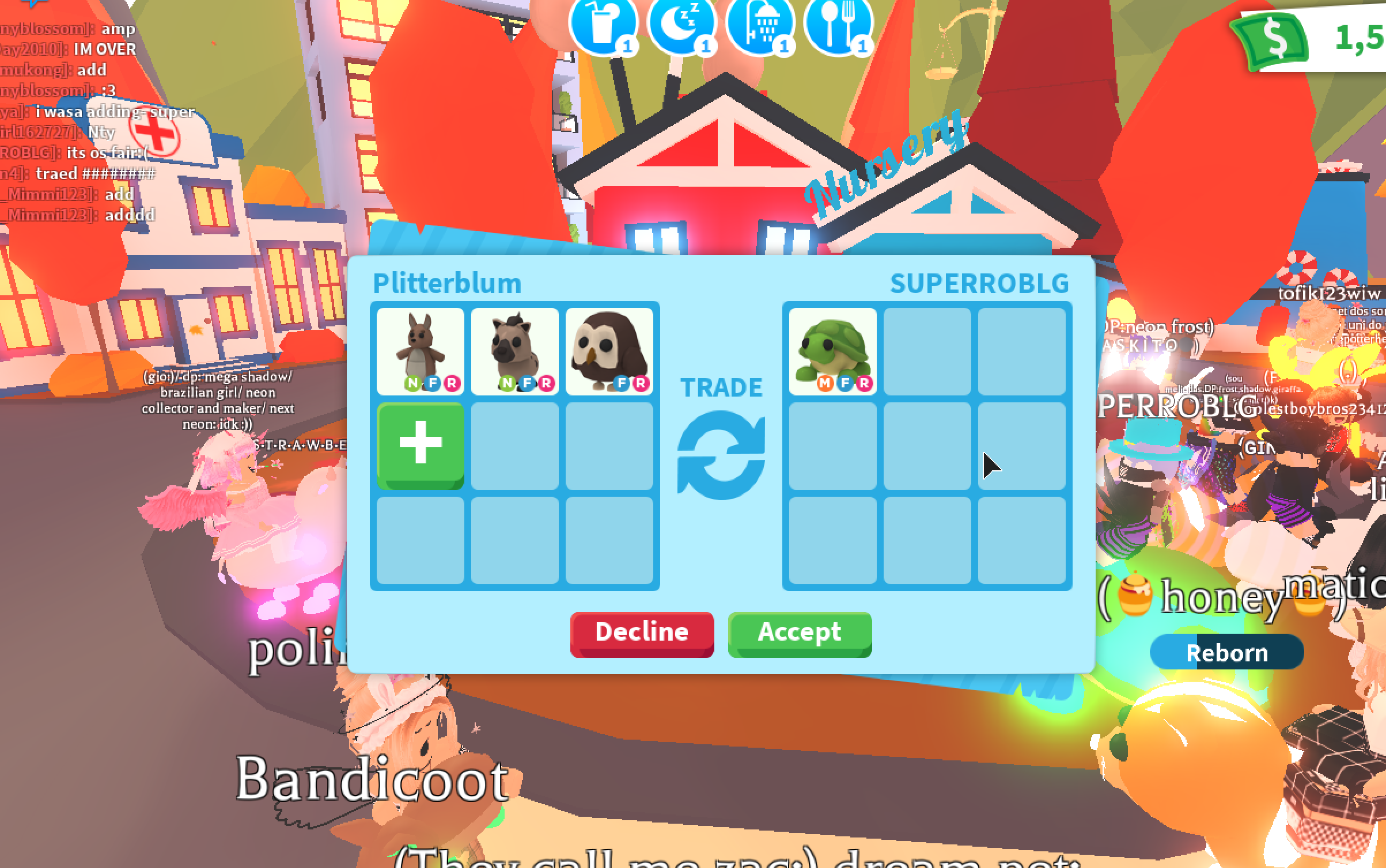 Okay because someone said a mega turtle is worth a neon bat and I was. Ill trade 2 crows for mega turtle.